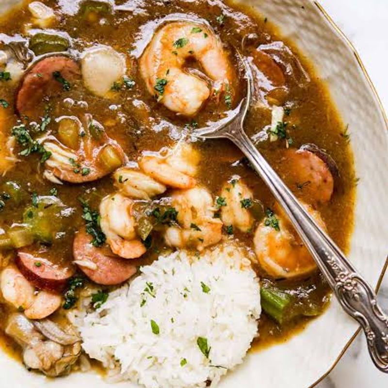 Fresh Andouille Sausage, Shrimp, Cod with green peppers in our house made Roux.