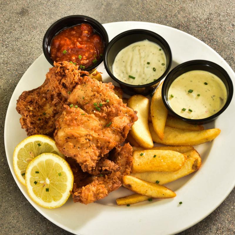 New England Golden Brown with house-made ketchup and tartar sauce.